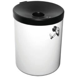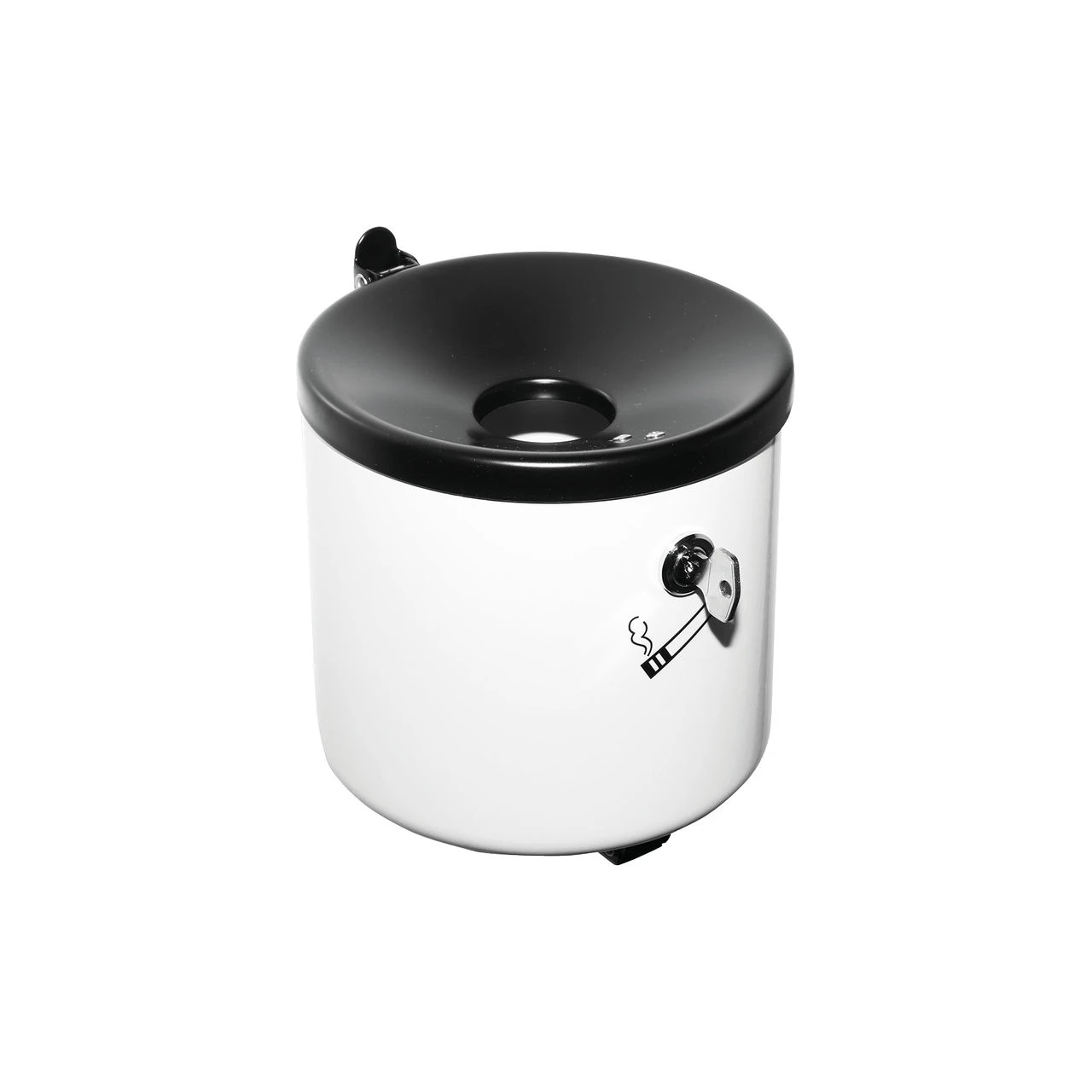 Der trichterförmige Deckel ist so konstruiert, dass er im Brandfall die Luftzufuhr stoppt und größere Schwelbrände verhindert. Die Entleerung ist ebenfalls clever gelöst und denkbar einfach. Durch den klappbaren und wiederverschließbaren Deckel können Asche und Zigarettenstummel schnell entsorgt werden. Dieser Deckel ist in der fest- verschließbaren Variante nur mit einem Schlüssel zu öffnen um unbefugten Zugriff und Missbrauch zu vermeiden.